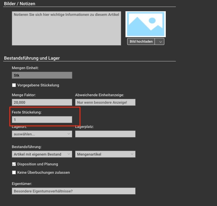 Stammdaten -> Artikel mit VPE