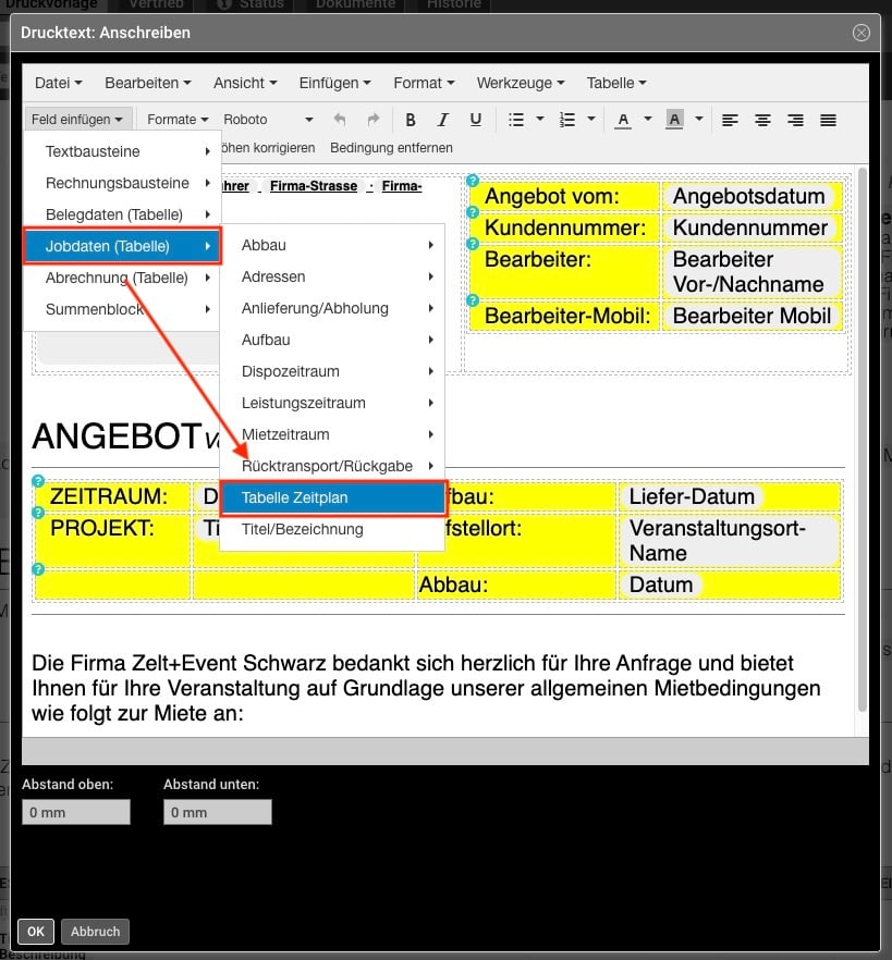 Jobs -> Zeitplanung -> Druckbaustein Zeitplanung jetzt personalisierbar