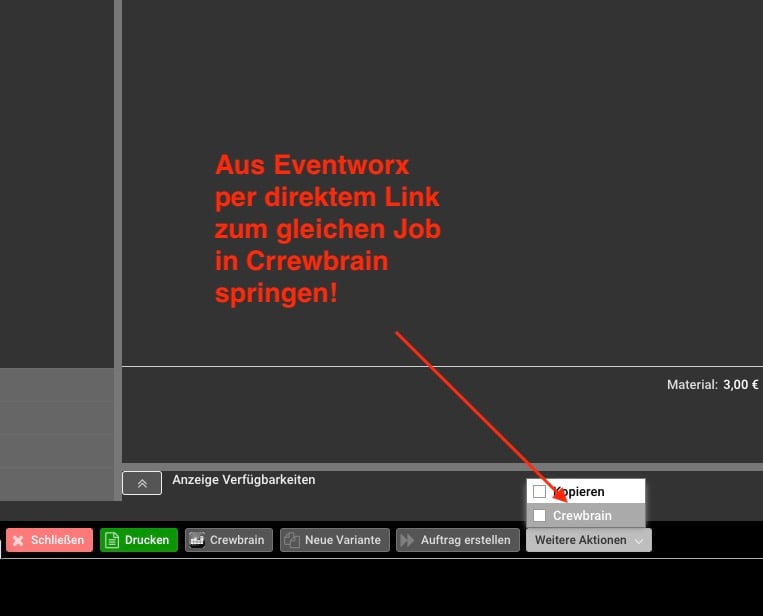 Nutzt Du unsere Crewbrain- Schnittstelle? Dann kannst Du jetzt direkt aus dem Eventworx- Job zum gleichen Job in Crewbrain springen.