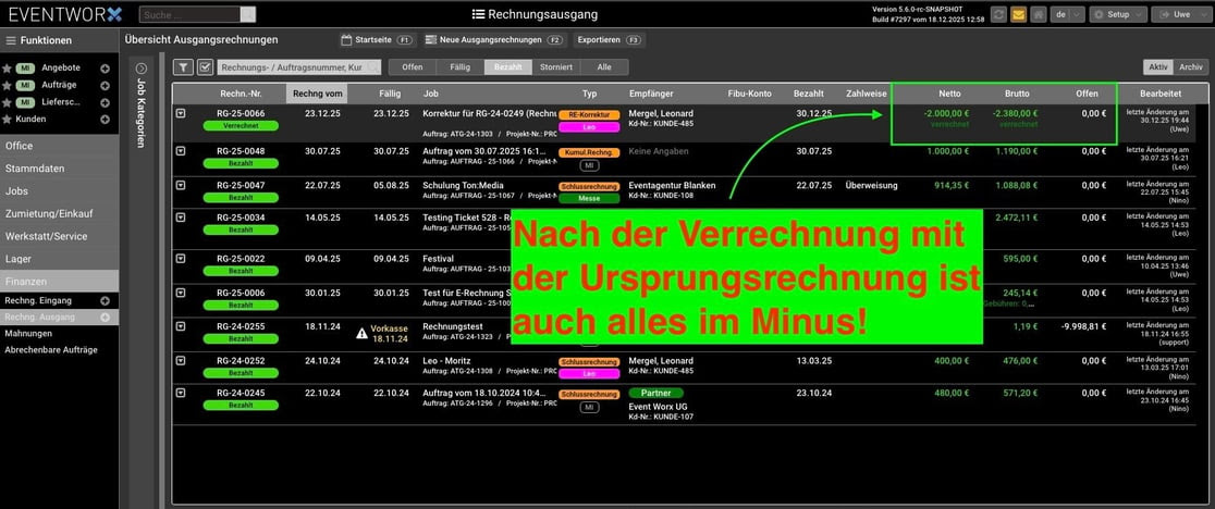 Beim Klick auf einzelne Rechnungen innerhalb der gefilterten Liste veränderte sich die Fußzeilensumme. Das Verhalten wurde korrigiert.