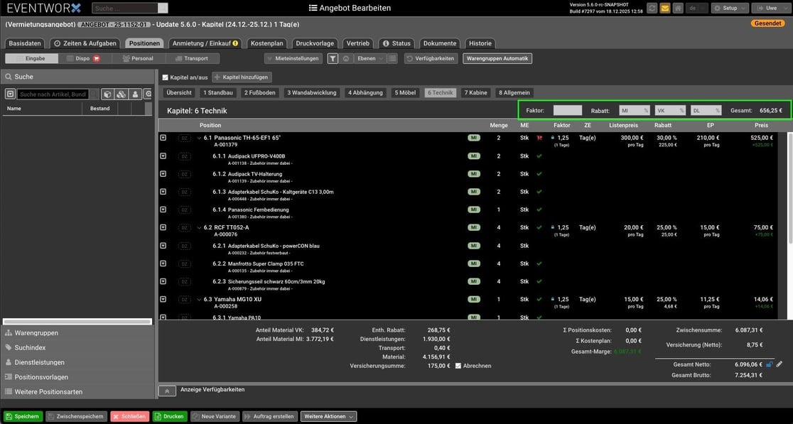 - Komplette Kapitel und Überschriften können jetzt als Schnellfunktion mit einem einheitlichen Rabatt oder Faktor versehen werden.