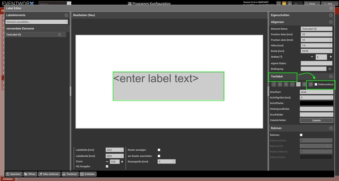Setup → Labeleditor