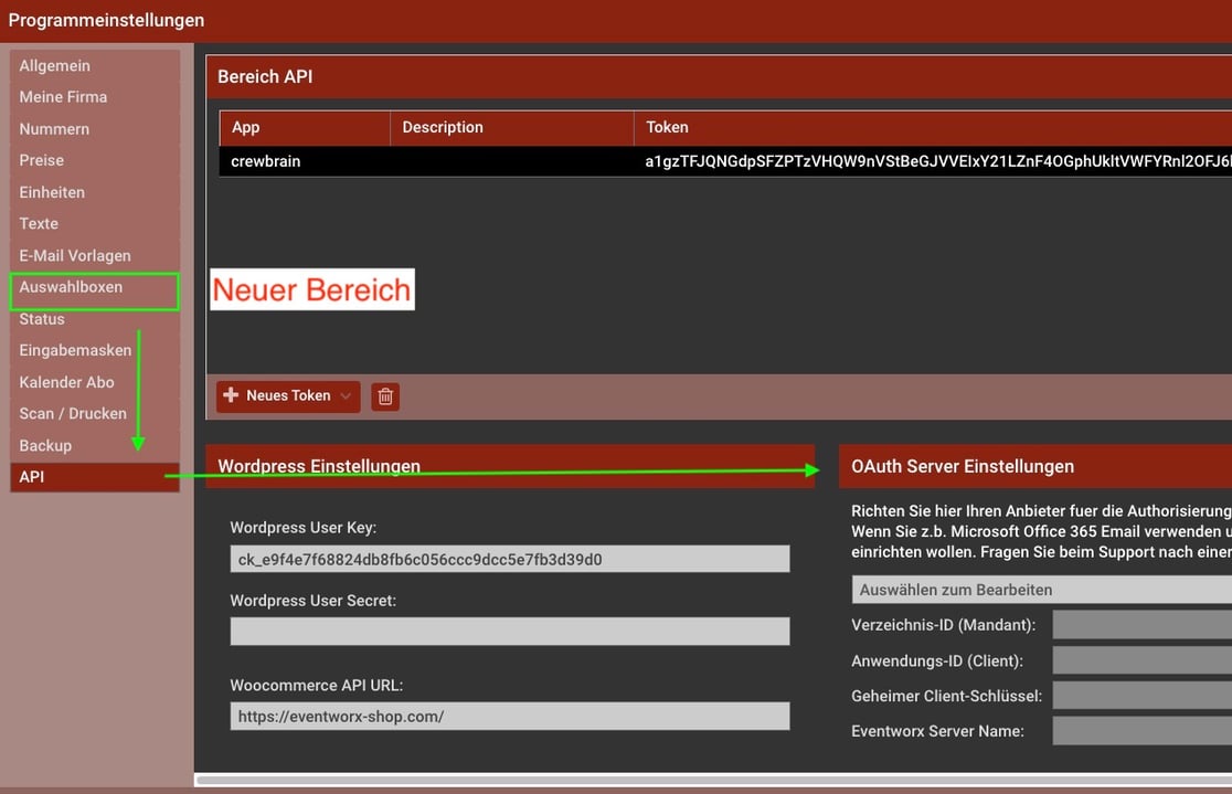 Die Verwaltung des OAuth haben wir verschoben. Du findest die entsprechenden Felder nun im Bereich API.