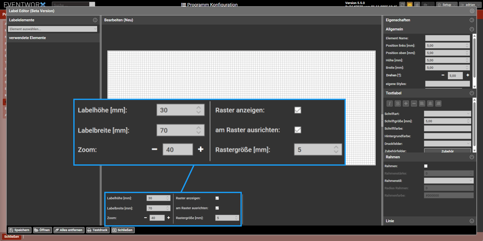 Über Größe und Position bestimmst du, wie breit das Feld sein soll und wo es auf dem Etikett stehen soll. Du kannst diese Werte entweder manuell eintragen oder das Feld per Drag and Drop verschieben.