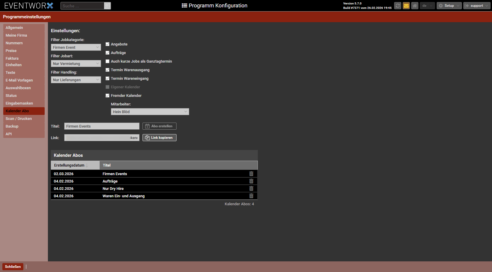 Kalender-Abonnements in Eventworx einrichten