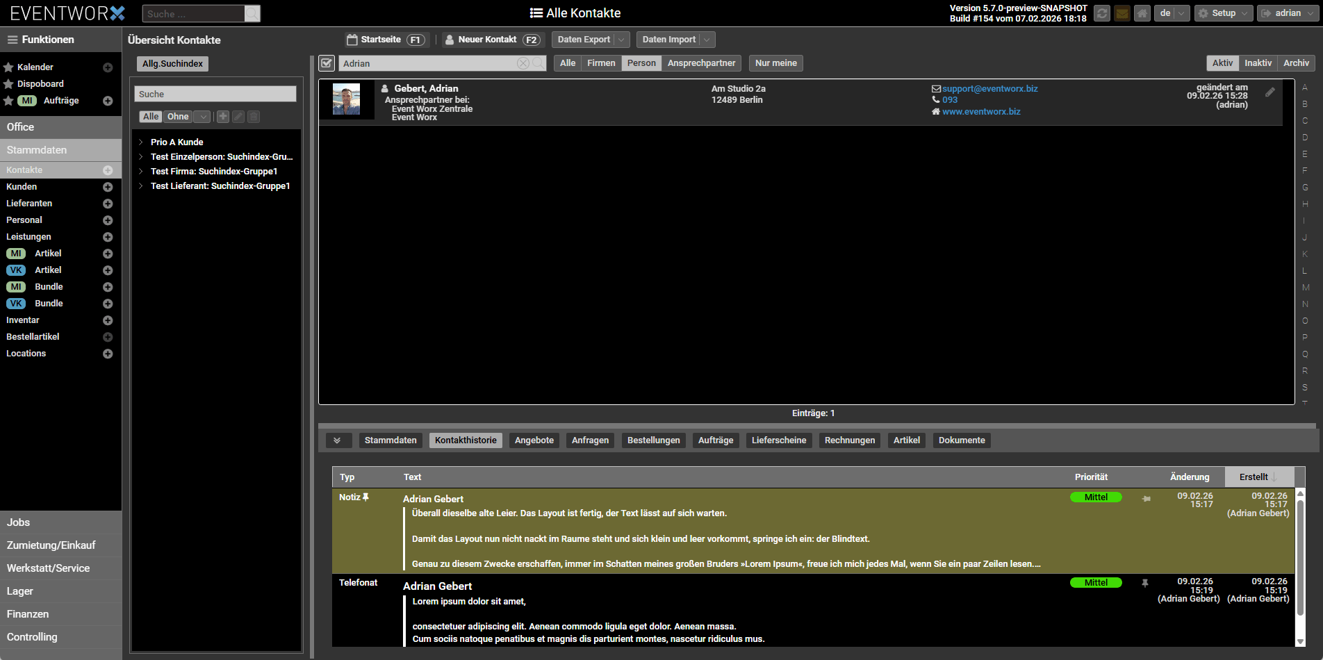 Die Kontakthistorie ist ein eigener Bereich in den Kontakt Stammdaten.