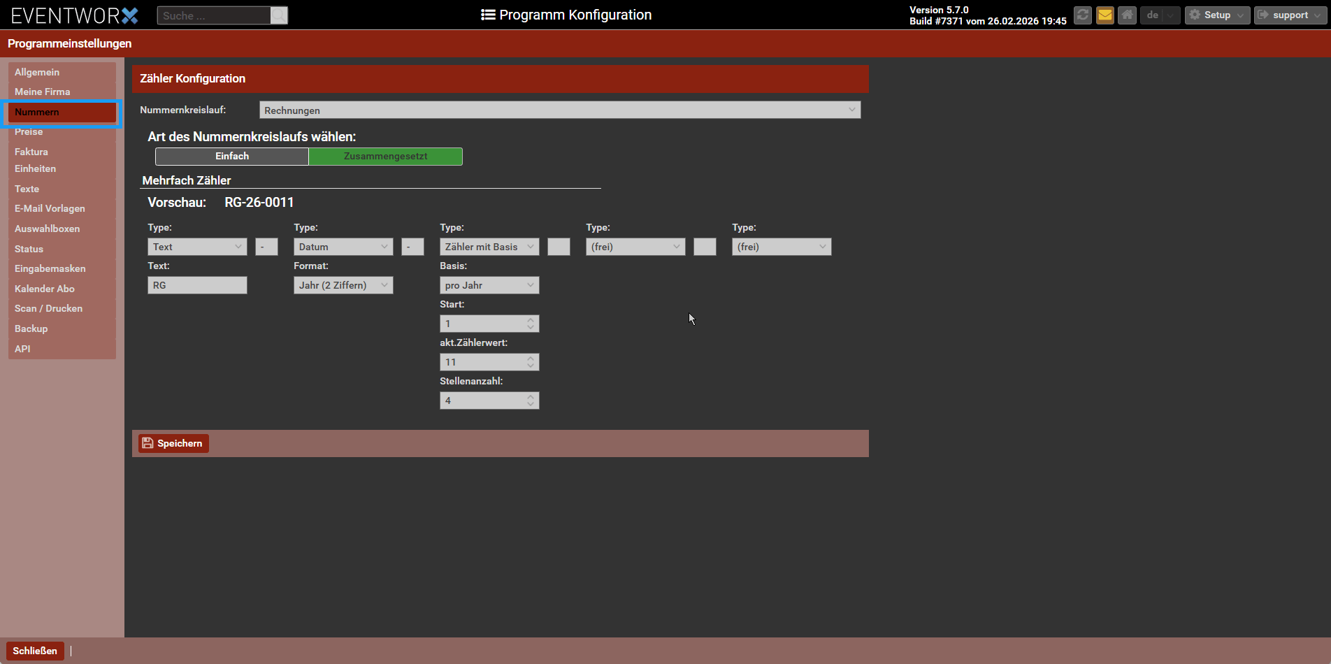 | Aktueller Zählerwert | Diese Nummer wird beim nächsten Dokument automatisch vergeben |